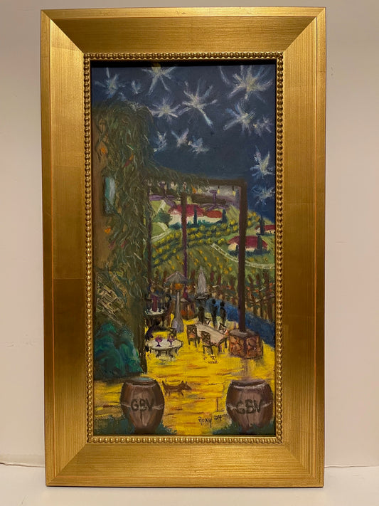 Lorenzi Estate Vino y Rosas-Original Pintura Pastel al Óleo 10 x 20 Enmarcada