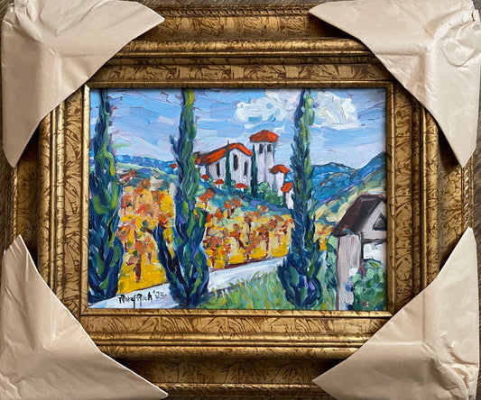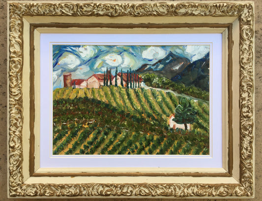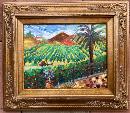 Vineyard View at Chapin-Original Contemporary Impressionism Oil Landscape Painting Framed