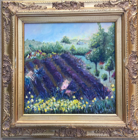 Pintura de paisaje al óleo de impresionismo contemporáneo original de Provenza enmarcada (lavanda)