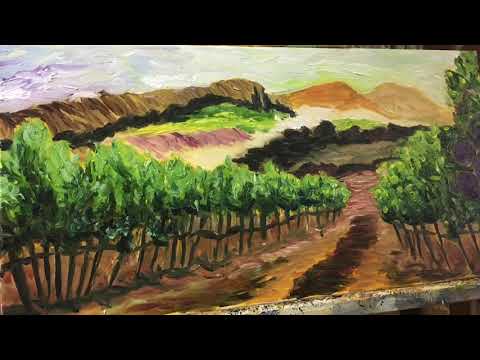 Mountain View at Chapin Family Vineyards -Original Palette Knife Oil Painting Framed