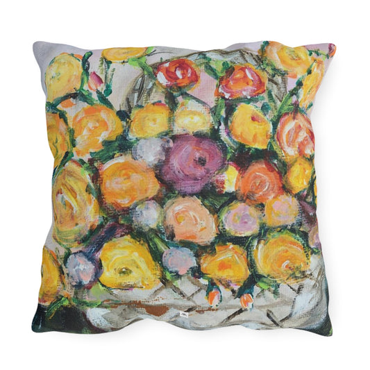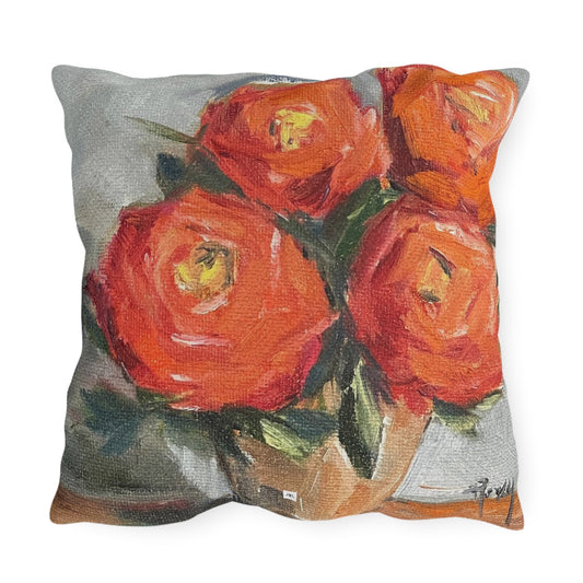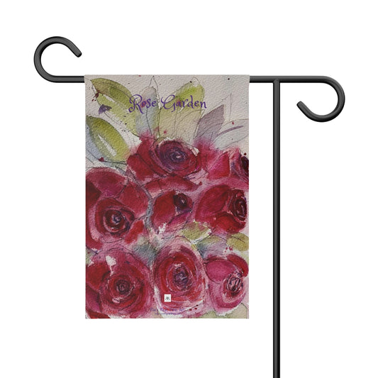 Rose Garden Original Suelto Floral Acuarela Rosas Rojas impresas en una pancarta de jardín