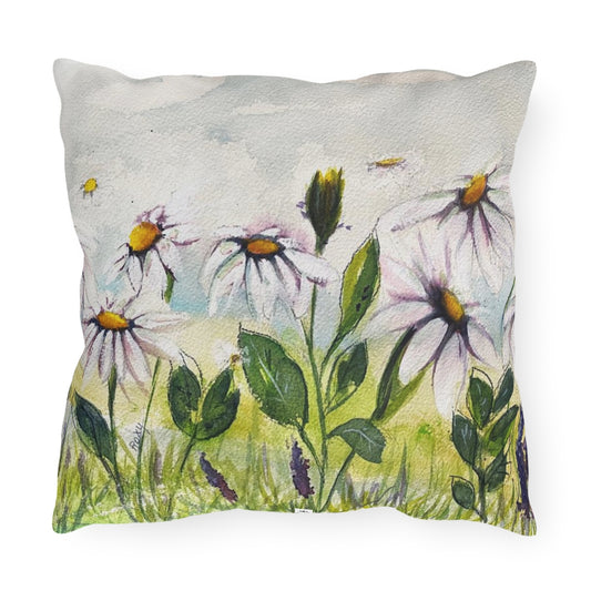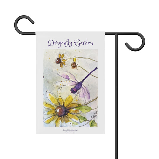 Purple Dragonfly Garden Original Loose Floral Acuarela Libélula Púrpura en una pintura de Coneflower impresa en un estandarte de jardín