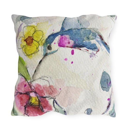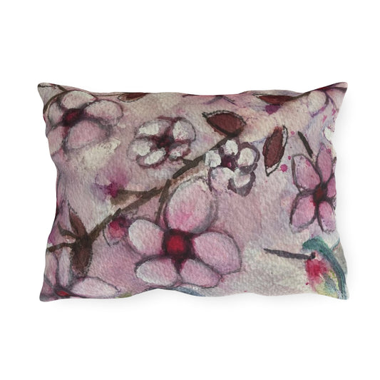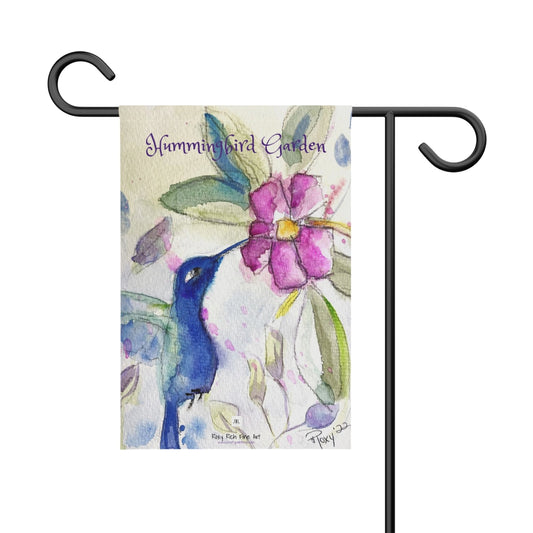 Colibrí de acuarela floral suelto original de Hummingbird Garden impreso en un estandarte de jardín