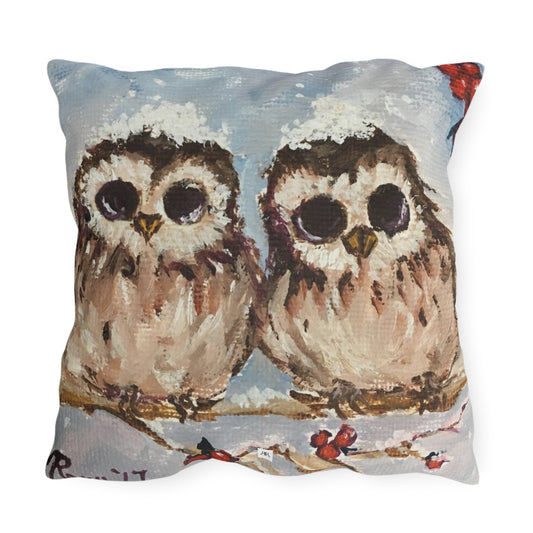 Adorables búhos bebés en la nieve almohadas para exteriores