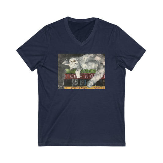 Bibliocat (en 6 colores)-Camiseta unisex de manga corta con cuello en V