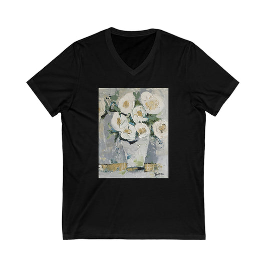 Shabby Roses-Camiseta unisex de manga corta con cuello en V
