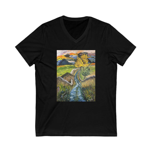Yorkshire Dales-Camiseta unisex de manga corta con cuello en V