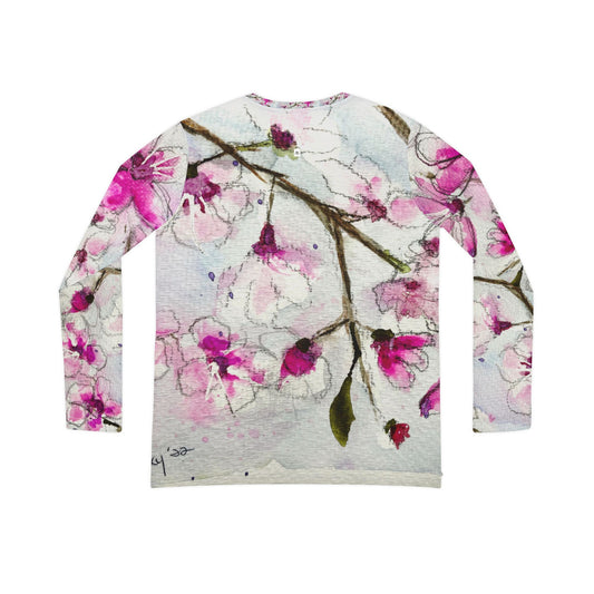 Long Sleeve Shirt-Watercolor Cherry Blossoms- V-neck Women's
