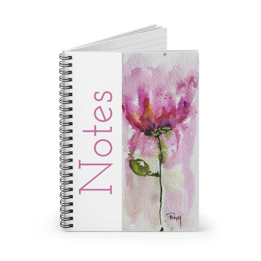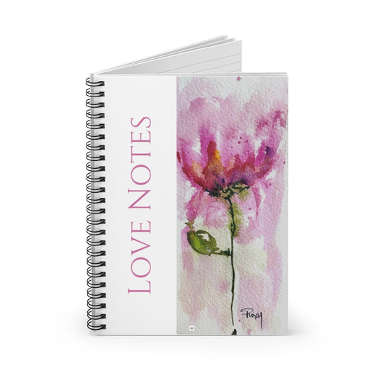 Notas de amor Pintura original de flores rosas florales sueltas en acuarela impresa en un cuaderno en espiral - Forrado con reglas - Regalo para mamá amiga y estudiante
