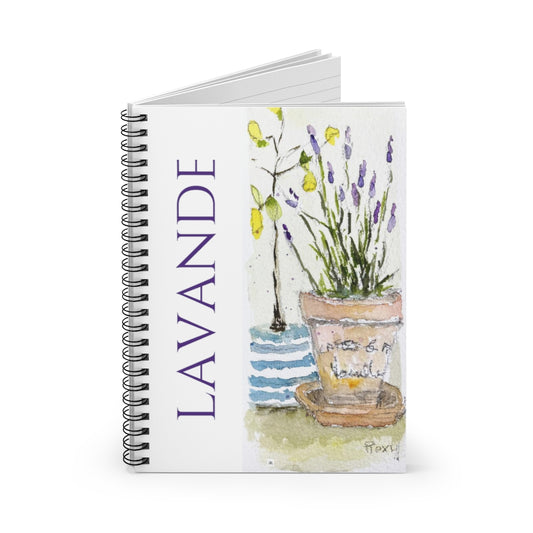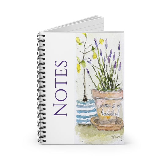 Notas Pintura original de limones florales sueltos y flores de lavanda impresa en un cuaderno de espiral - Forrado con rayas - Regalo de mamá amiga estudiante