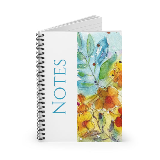 Notas Original Suelto Floral Rosa Naranja Tubo Flores Pintura impresa en Cuaderno Espiral - Rayado Forrado - Mamá Amiga Estudiante regalo