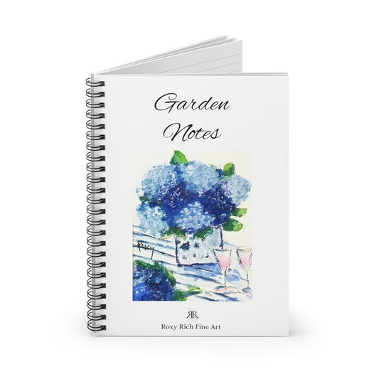 Notas de jardín "Hortensias azules sobre la mesa" Cuaderno de espiral