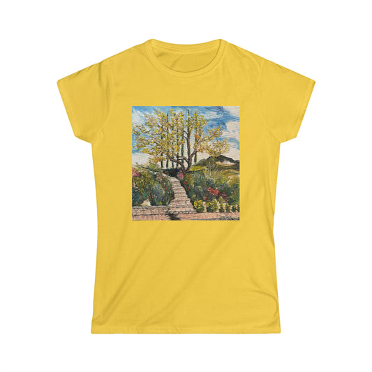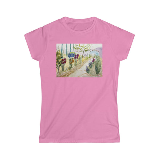Lady with Irises Camiseta semiajustada Softstyle para mujer