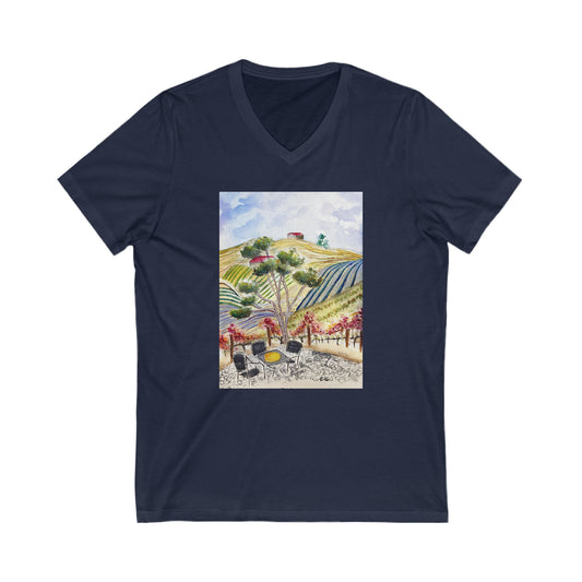 Vista al patio en GBV-Camiseta unisex de manga corta con cuello en V