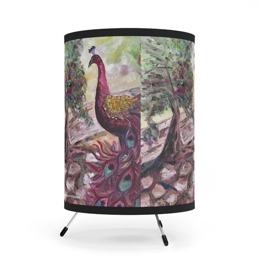 Lámpara trípode Cotswolds de pavo real morado