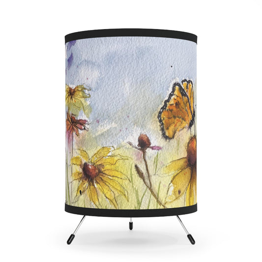 Lámpara trípode mariposa monarca y equináceas