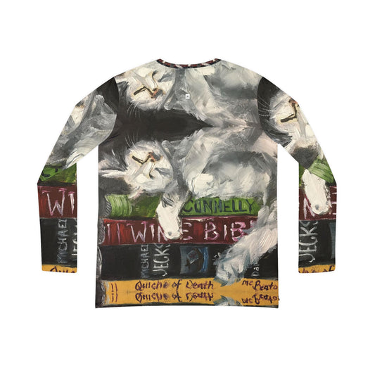 Long Sleeve Shirt- Bibliocat/ Cat Sleeping on Books- V-neck Women's