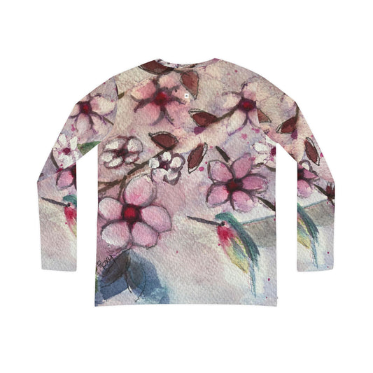 Long Sleeve Shirt-Hummingbird in Cherry Blossoms- V-neck Women's