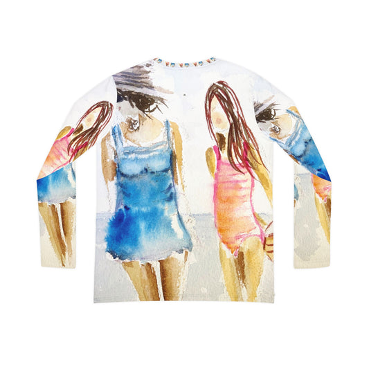 Long Sleeve Shirt-Mother and Daughter Beach Babes in Swimsuits- V-neck Women's
