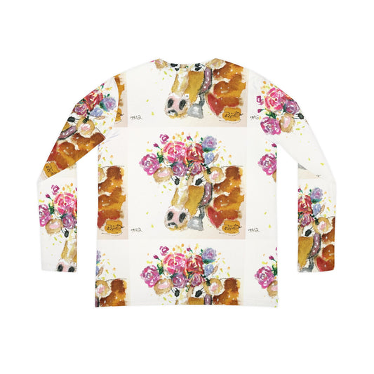 Long Sleeve Shirt-Adorable Cow with Flowers on its Head- V-neck Women's