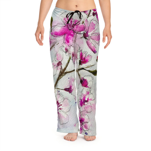 Pajama Pants - Watercolor Cherry Blossoms- Women's Pajama Pants