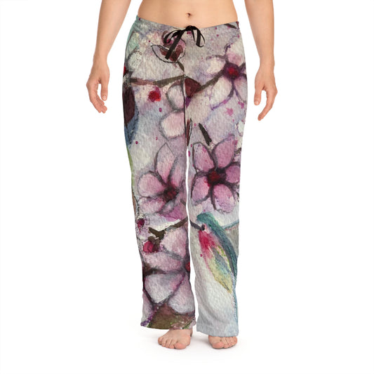 Pajama Pants - Hummingbird in Cherry Blossoms- Women's Pajama Pants