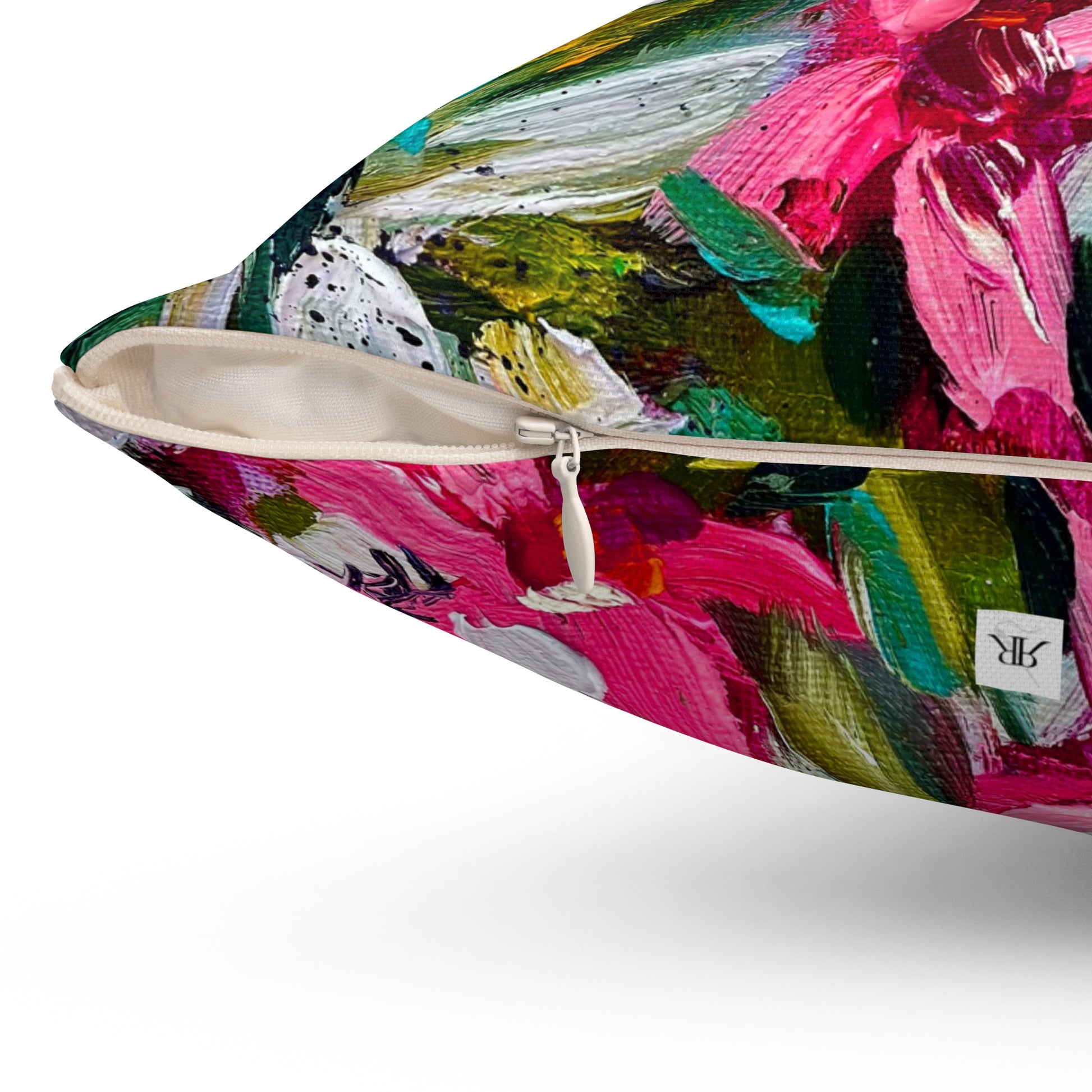 Indoor Spun Polyester Square Pillow-Colorful Encounter Goldfinch