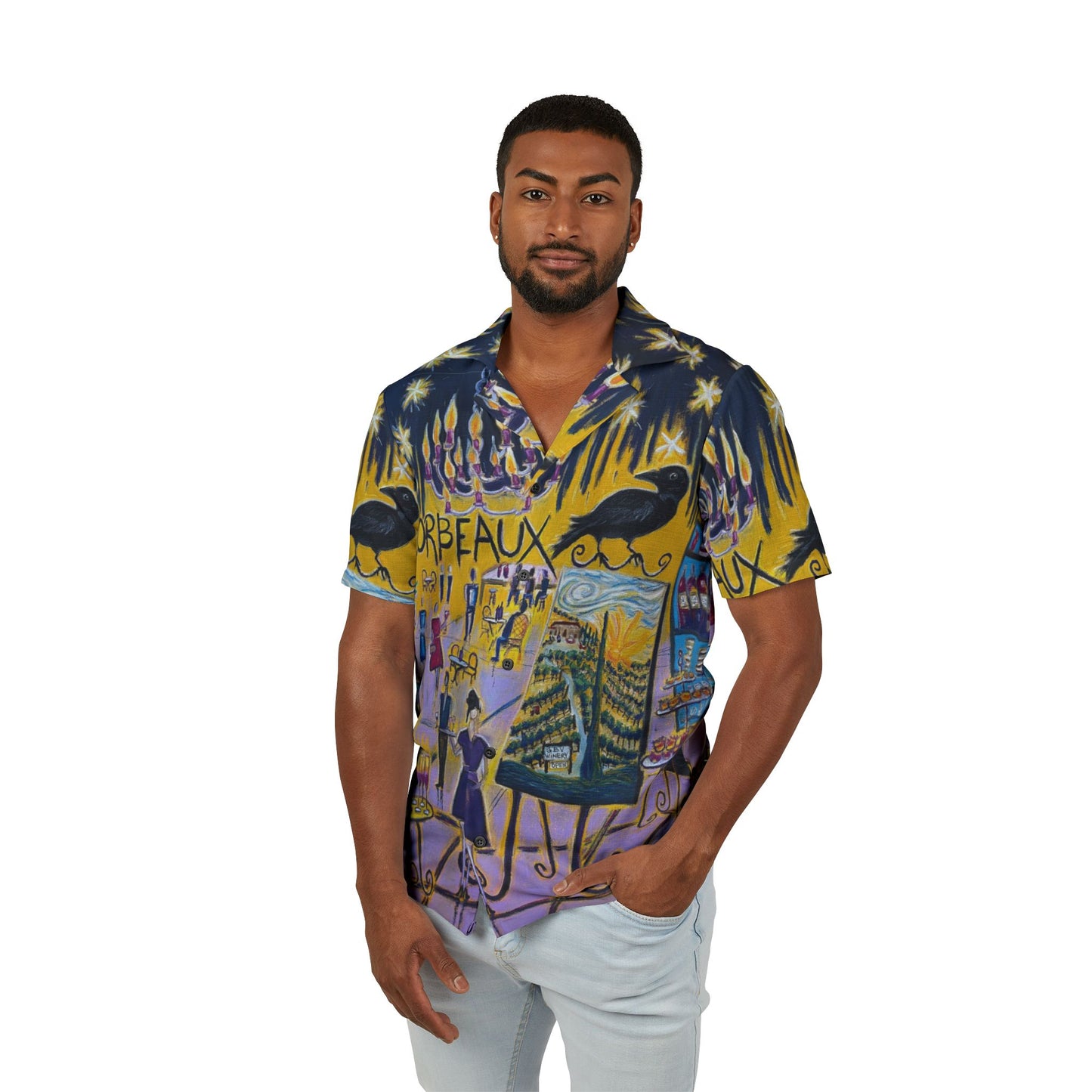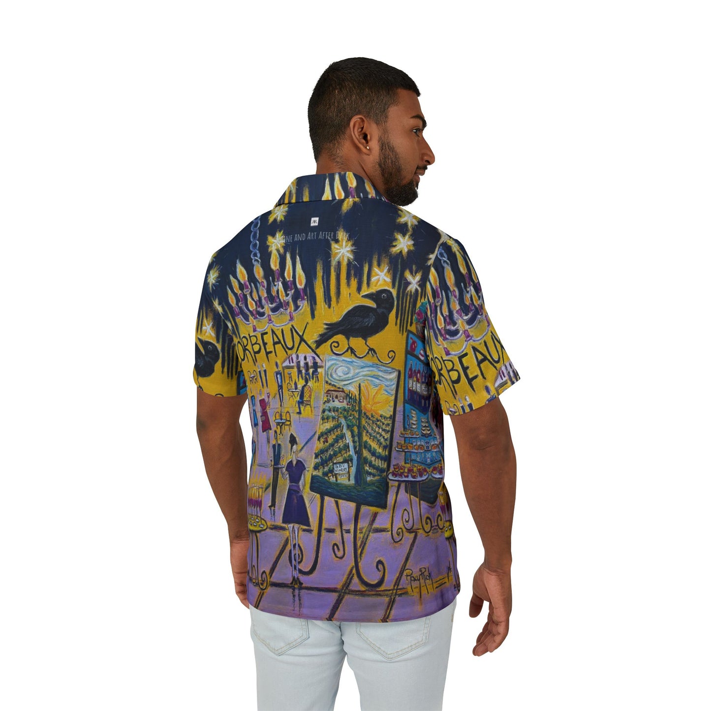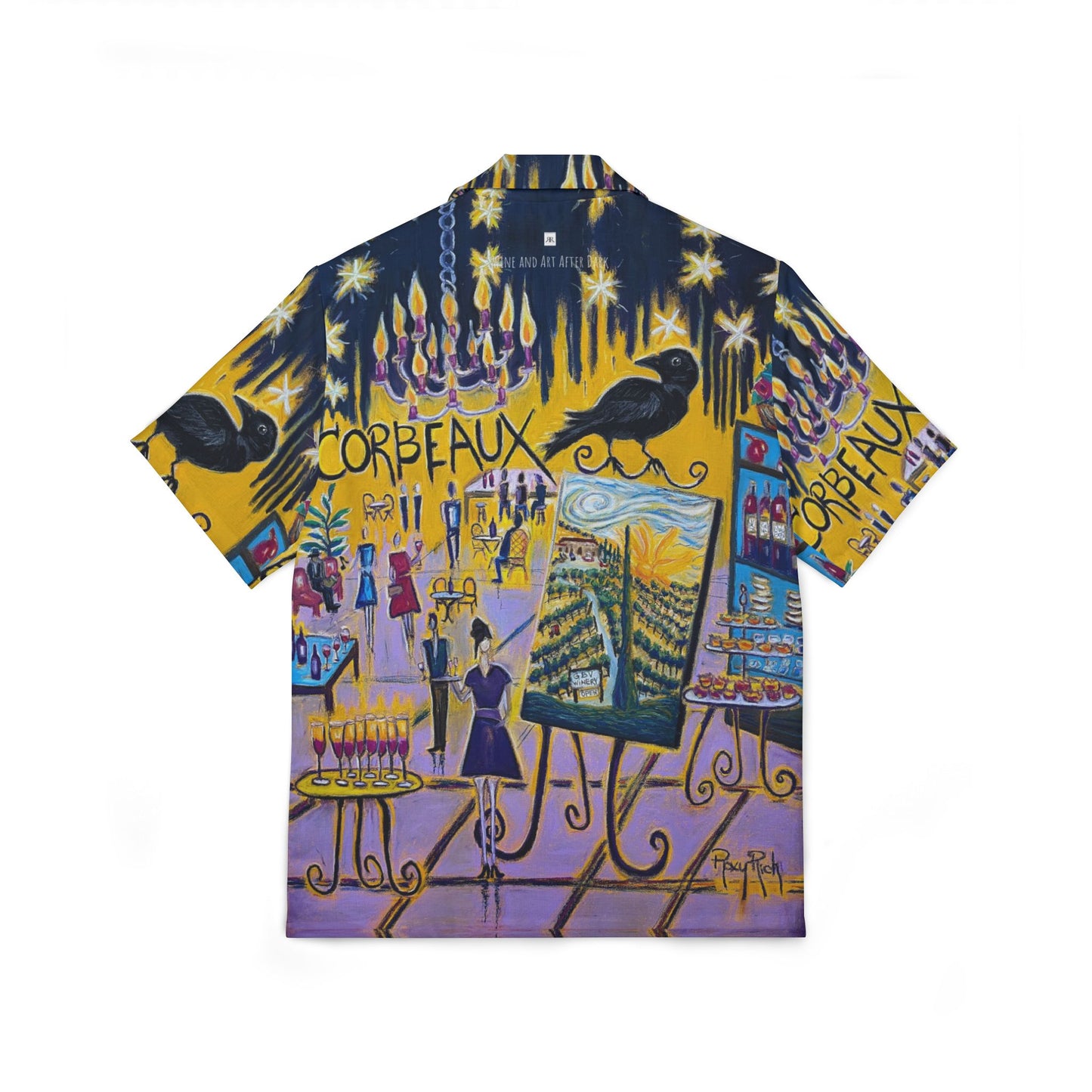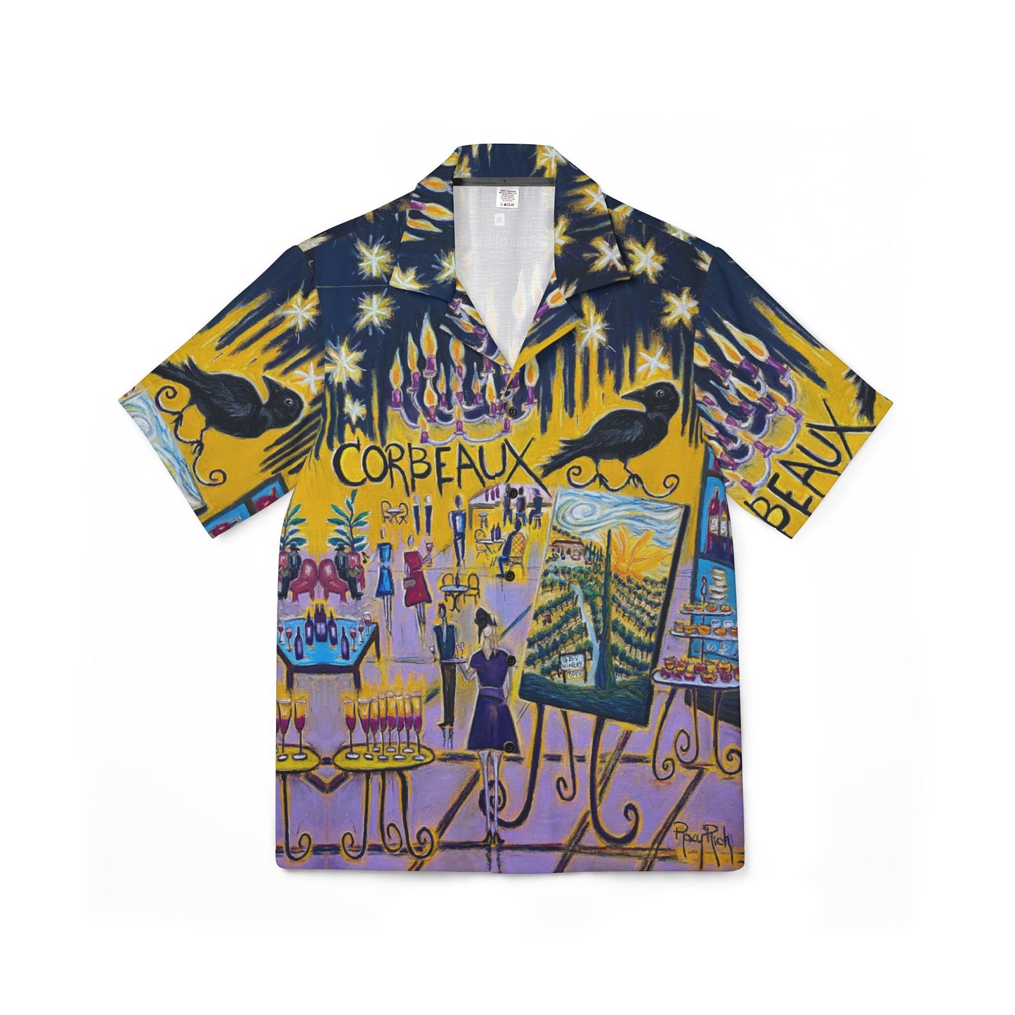 Men's European Fit Hawaiian Camp Shirt -Corbeaux-Wine and Art After Dark