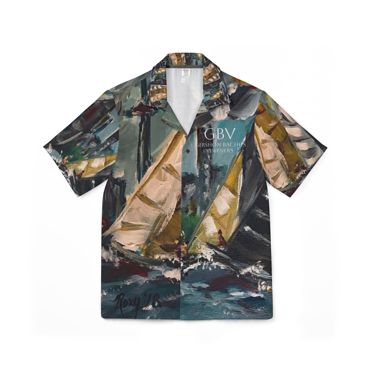 Men's European Fit Hawaiian Camp Shirt -Racing Day-New York Sailboat Races with GBV for Alex