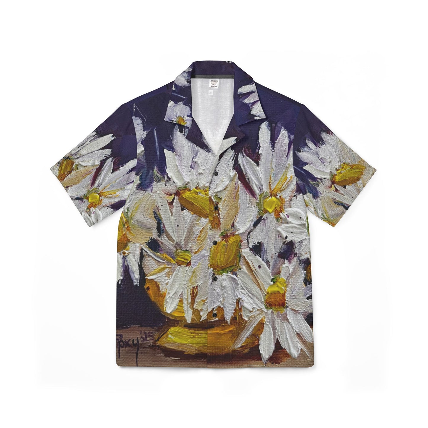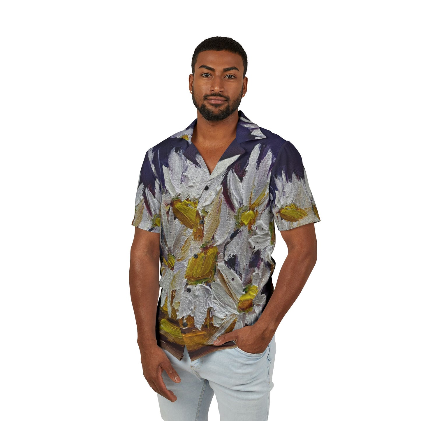 Men's European Fit Hawaiian Camp Shirt -Vase of Daisies