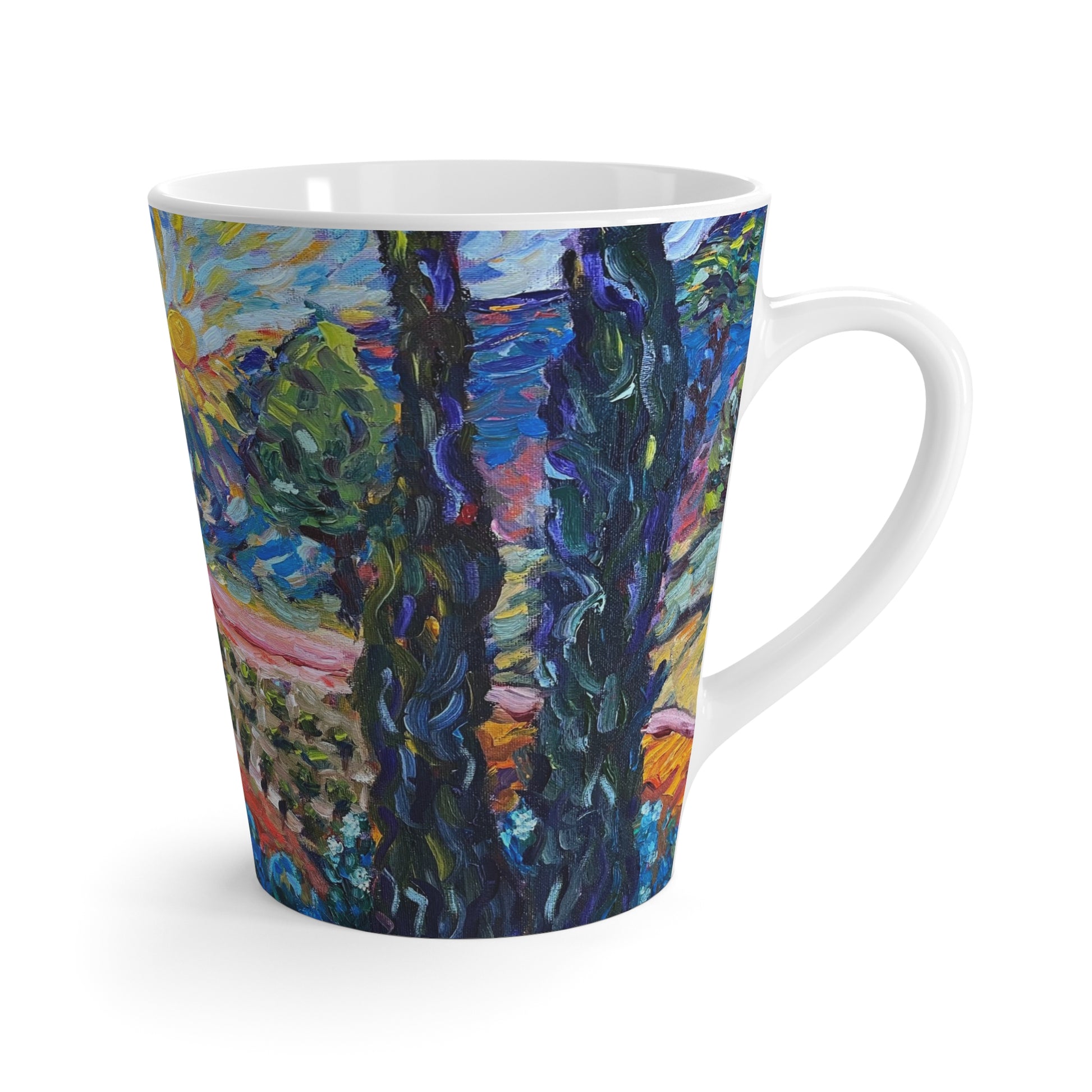 This beautiful Latte Mug features fine art from Roxy Rich, evoking a cheerful and artistic vibe. Perfect for cozy mornings with a hot latte, this mug can brighten up anyone's day. Ideal for art lovers and those who appreciate unique designs. Great for gifting on birthdays, holidays, or special occasions.