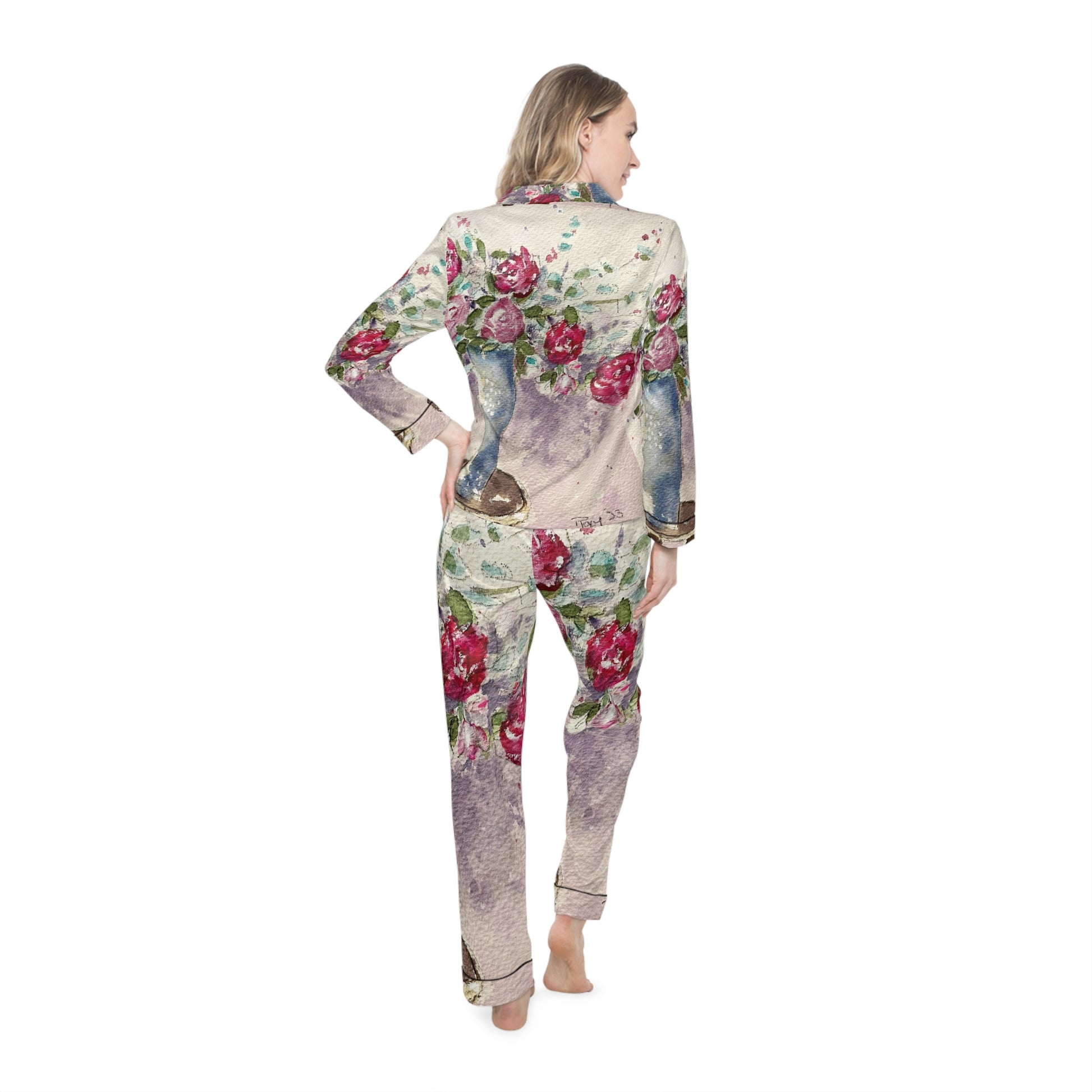 Luxurious satin pajamas perfect for a cozy and stylish lounging experience. Ideal for women who love comfort and elegance. Great for relaxing at home, sleepovers, or special occasions like birthdays or bridal showers.