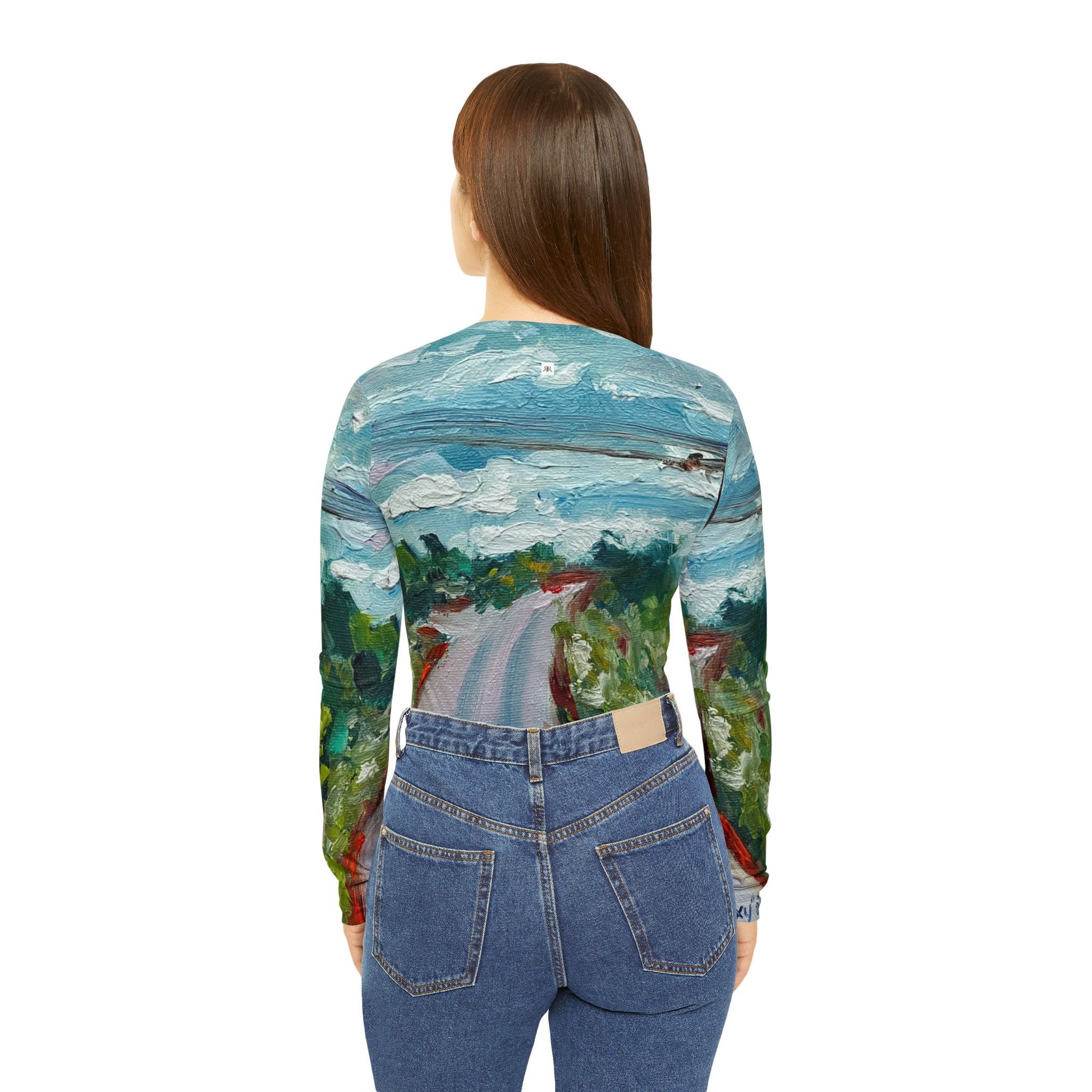 Women's Long Sleeve V-neck Shirt -Road to Tranquility-Cotswolds