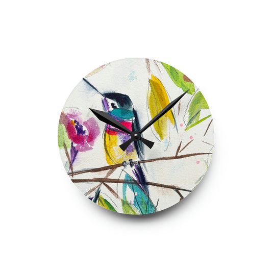Horloge murale en acrylique Mésange sur un arbre à baies