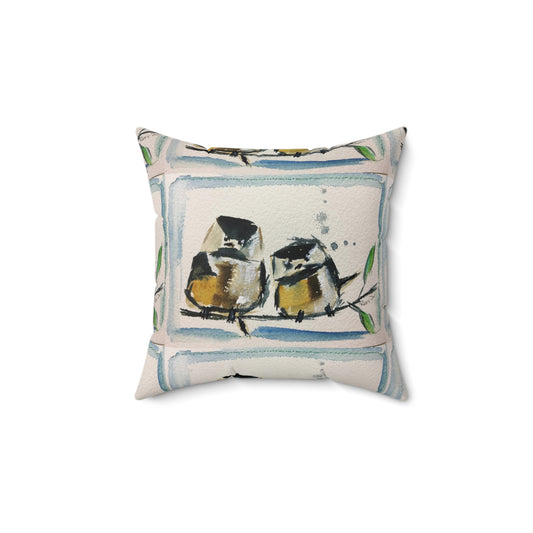 Deux grosses mésanges (motif) Oreiller carré en polyester filé d’intérieur