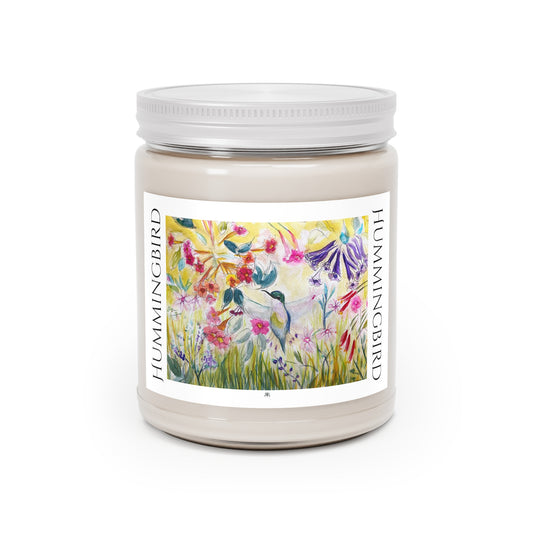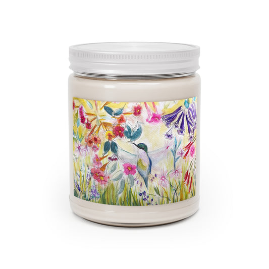 Colibri dans un jardin de fleurs en tube #2 Bougie parfumée 9oz