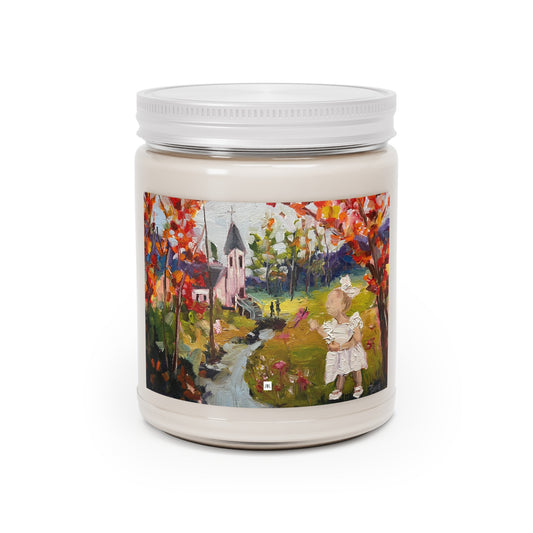 Isla au baptême (paysage d'église rurale avec tout-petit) bougie parfumée 9oz