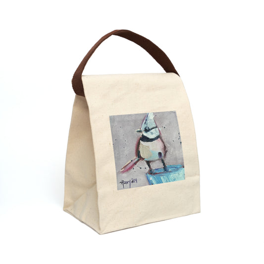 Adorable sac à lunch en toile avec mésange huppée et sangle