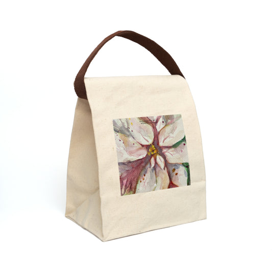 Sac à lunch en toile de poinsettia blanc avec sangle
