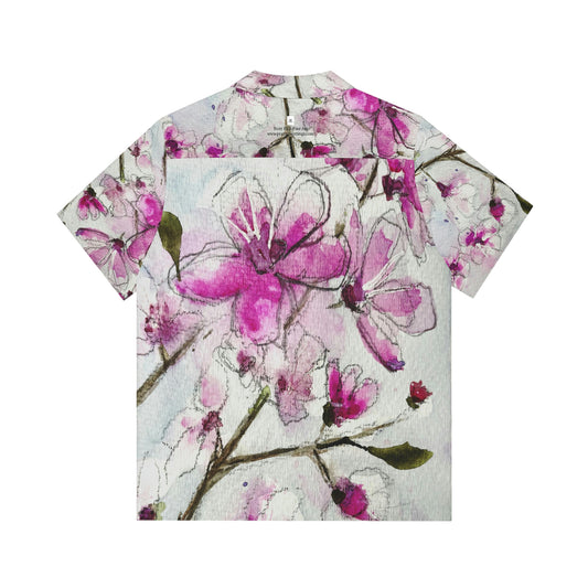 Chemise hawaïenne pour hommes, peinture à l'aquarelle florale originale en fleurs de cerisier