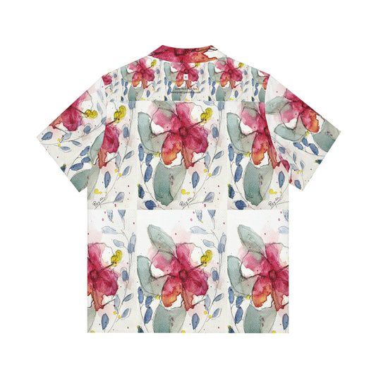 Hibiscus Flower Original Loose Floral Aquarelle Peinture Chemise hawaïenne pour hommes