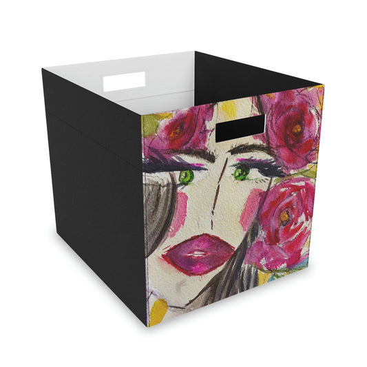 Boîte de rangement en feutre Dame colorée avec roses aquarelle « uh huh »