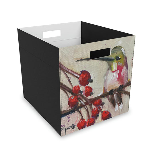 Colibri sur une boîte de rangement en feutre de rosier