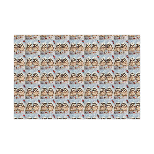 Adorables poussins hiboux avec neige et baies, papier d'emballage cadeau, expédiés d'Amérique