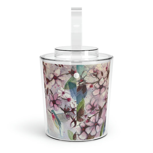Colibri dans un seau à glace en fleurs de cerisier