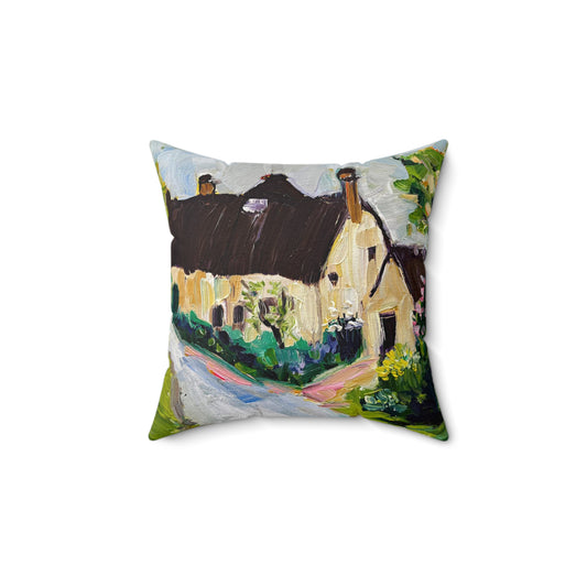 Charmant coussin carré d’intérieur en polyester filé du village des Cotswolds