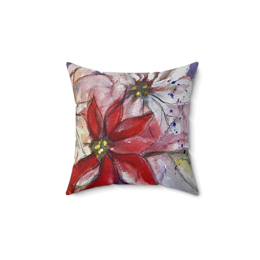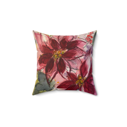 Oreiller carré en polyester filé d’intérieur poinsettias