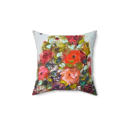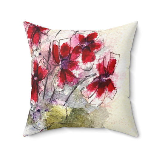 Oreiller carré en polyester filé d’intérieur à géraniums de lierre rouge