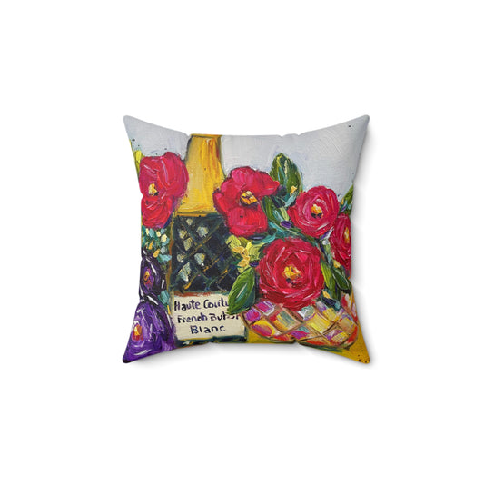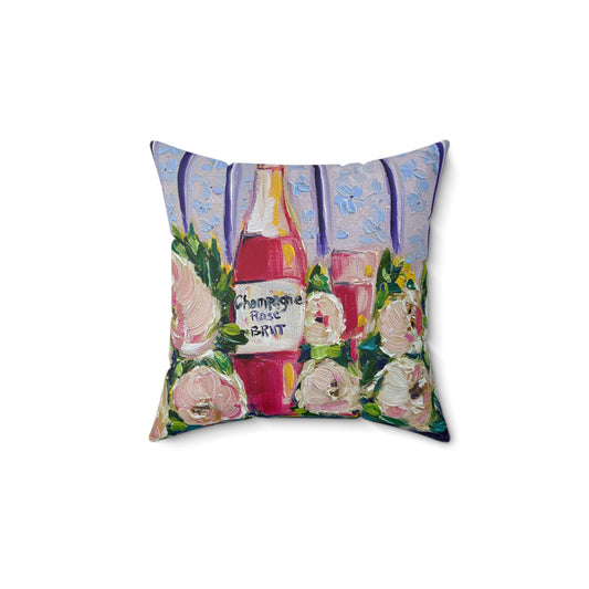 Français Bulles- Champagne et Roses- Oreiller carré en polyester filé intérieur
