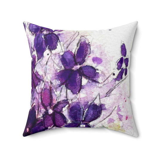 Oreiller carré en polyester filé d’intérieur Purple Ivy Geraniums